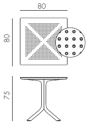 Zahradní stůl Clip 80 je vyrobený z tvrzeného plastu zpevněného skelným vláknem. Je dostupný ve 4 barevných variantách. Díky kruhové struktuře stolové desky se ke stolu dokonale hodí židle Bora nebo Bora Bistrot, které mají stejný design. Stůl je dostupný také v menší verzi 70x70 cm.