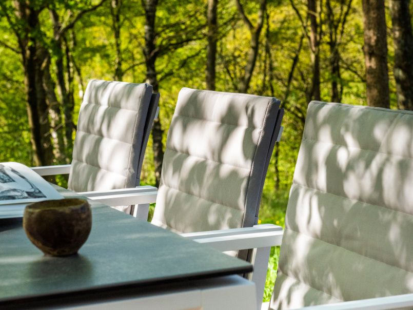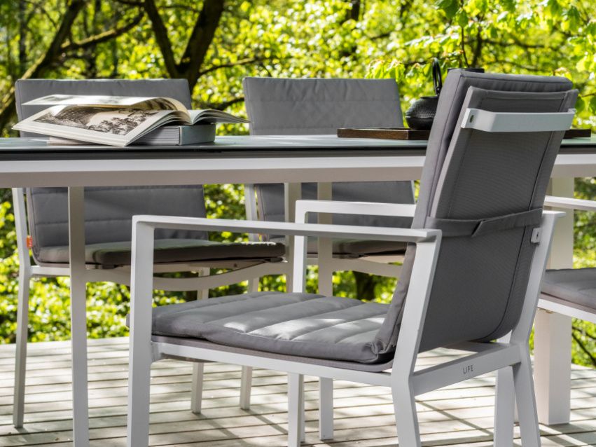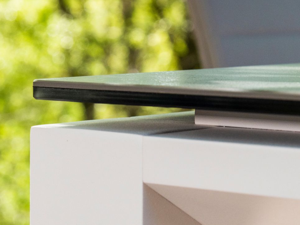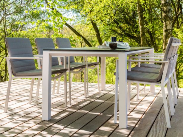 Elegantný  záhradný jedálenský stôl Concept Ceramic White. Konštrukcia stola je hliníková striekaná práškovou bielou farbou. Stolová doska je z inovatívneho materiálu Ceramic Concrete Look. . Konštrukcia stola je dostupná aj v antracitovej farbe