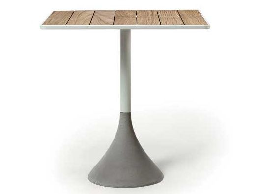 Nádherné a moderní provedení bistro stolu, přesně to prezentuje stůl Concreto 70. Základna stolu je betonová, konstrukce je z hliníku a je doplněná o kvalitní teakovou stolovou desku. Pokud nechcete teakovou, můžete zvolit i z HPL laminátu. Tento typ stolu je ideální do moderních restaurací nebo na terasy luxusních hotelů, ale určitě Vám udělá radost i na Vaší terase. Stůl je dostupný i v menší verzi 60x60 cm.