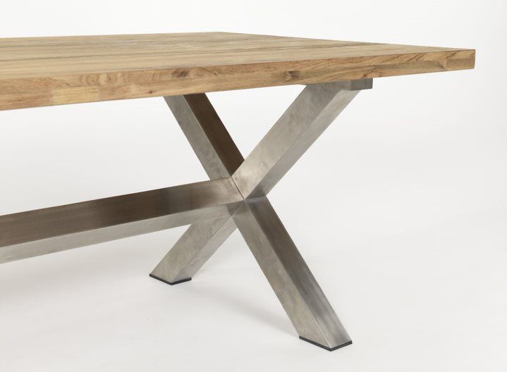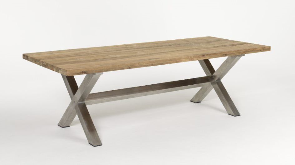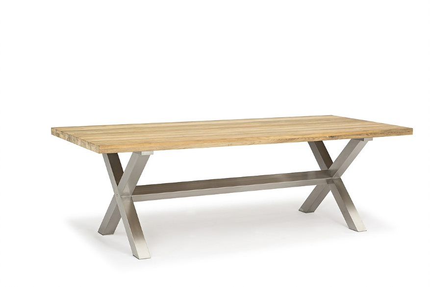 Nádherný zahradní jídelní stůl Crossleg bude dominantou každé terasy nebo zahradní pergoly. Konstrukce stolu je z nerezové oceli a stolová deska má povrch z recyklovaného teakového dřeva. Při jeho velikosti k němu pohodlně usadíte celou rodinu a vychutnáte si společný oběd či večeři.