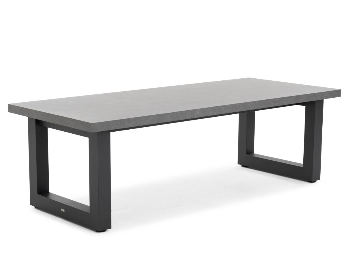 Elegantní robustní zahradní jídelní stůl Stelvio bude dominantou každé terasy nebo zahradní pergoly. Konstrukce stolu je hliníková a je stříkaná práškovou antarcitovou barvou. Stolová deska je z inovativního materiálu Ceramic Concrete Look. Při této velikosti stolu k němu pohodlně usadíte celou rodinu a vychutnáte si společný oběd nebo večeři. Stůl je dostupný ve dvou velikostech, 240x100 cm a větší 300x100 cm. Konstrukce stolu je dostupná i v bílé barvě.