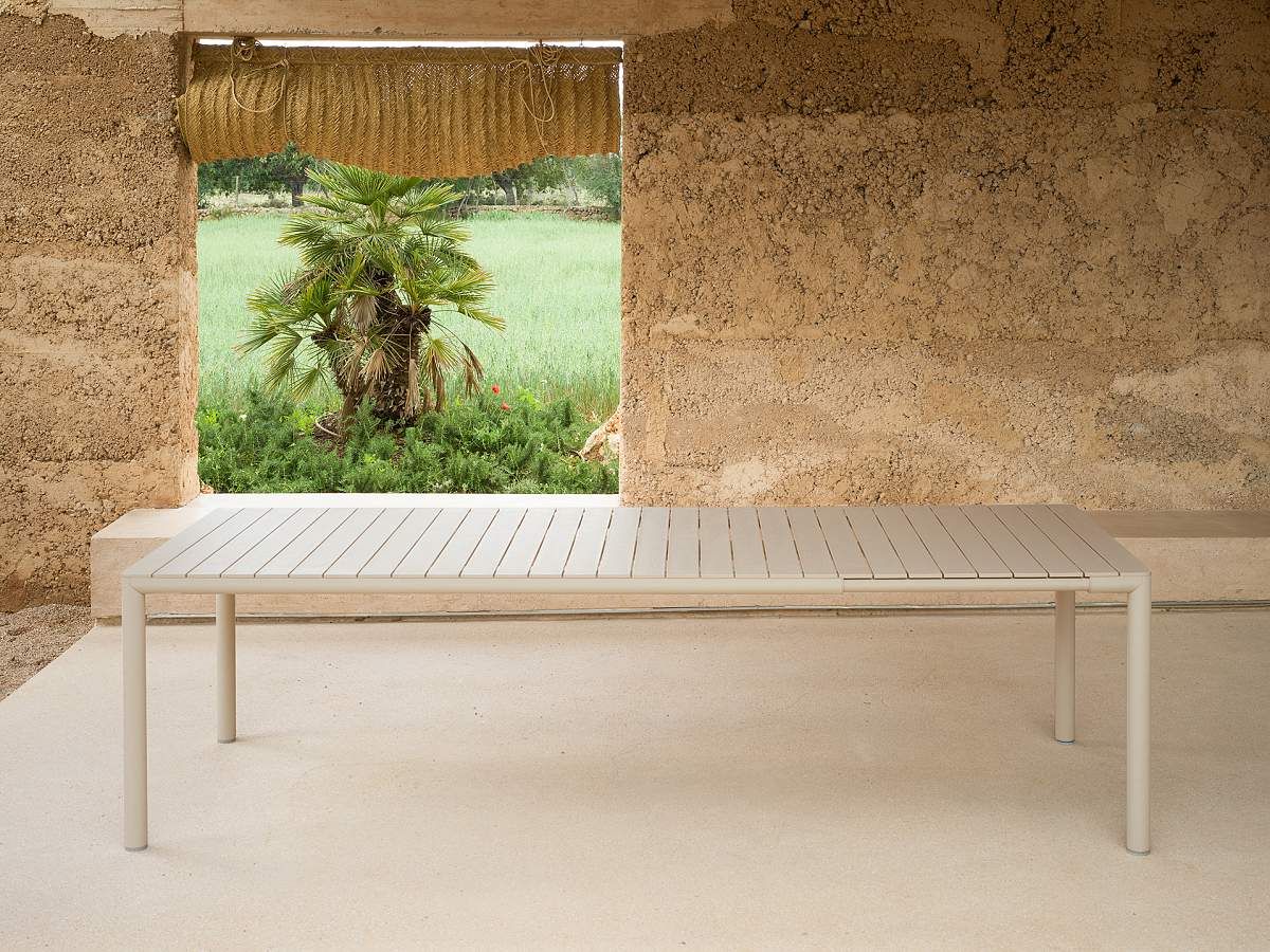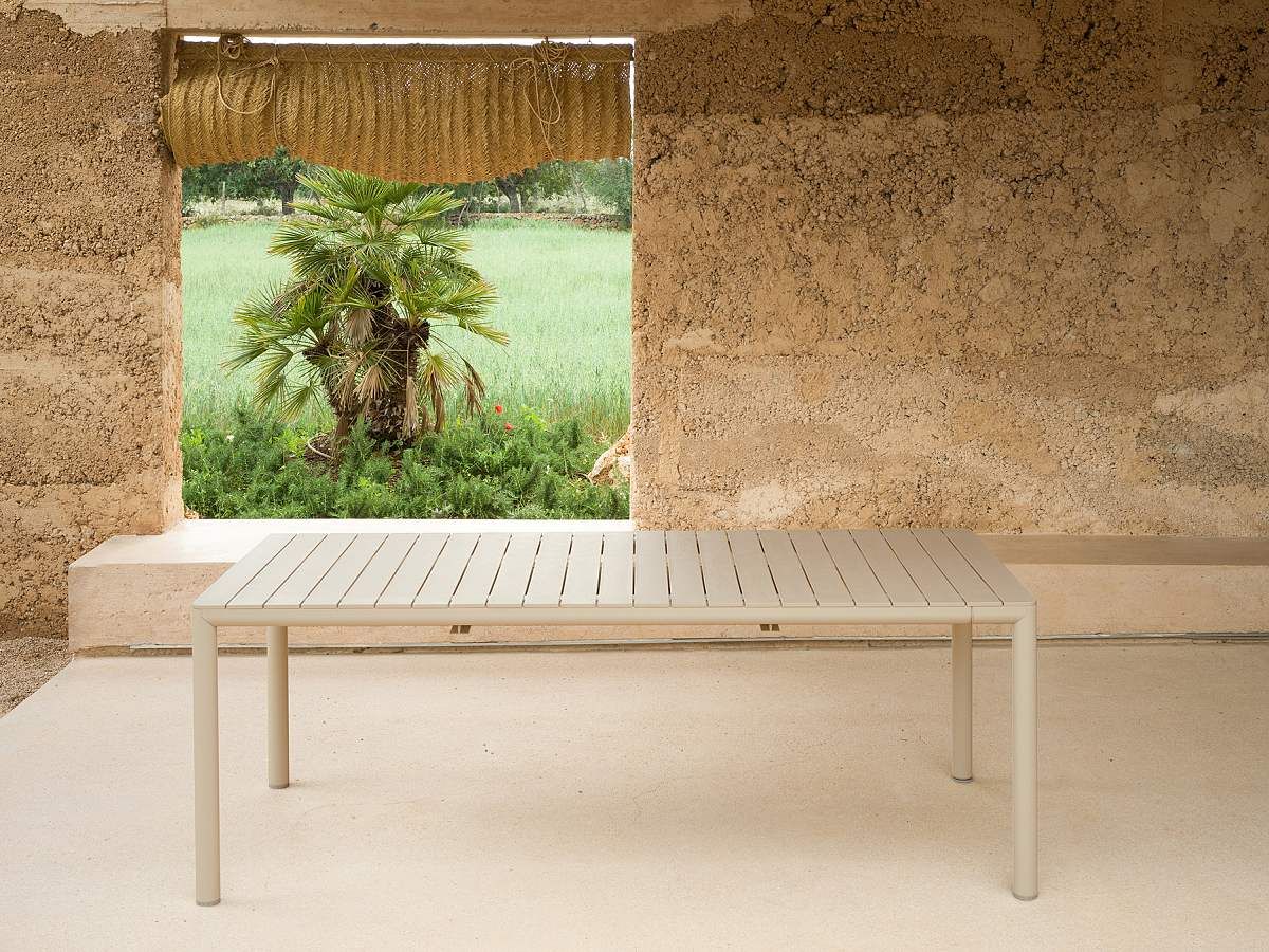 Krásný roztahovací zahradní stůl Tevere se pyšní elegantním designem s hladkými liniemi bez ostrých hran a zaoblenými nohami. Deska stolu je vyrobená směsí polypropylenu se skelným vláknem s anti-UV úpravou, která zabezpečuje odolnost vůči povětrnostním vlivem a slunečnímu záření. Na rám a nohy stolu je použitý lakovaný hliník. Stůl má nastavitelné nohy, které zabezpečují stabilitu i na nerovném povrchu. Stůl má praktický roztahovací mechanismus.