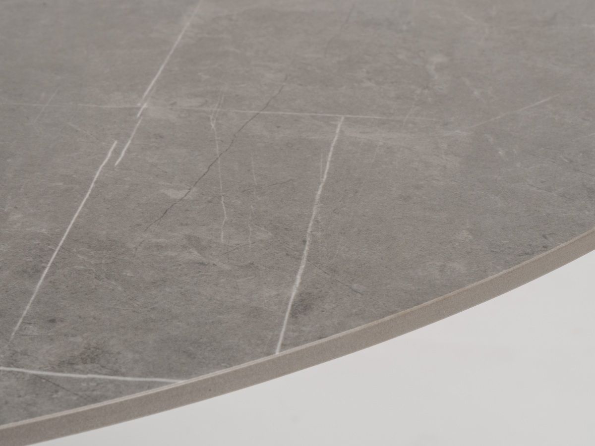Stolová doska: Sinterstone v odtieni Grau (sivá) – vysoko zhutnený materiál, ktorý presviedča svojou dlhou životnosťou, odolnosťou proti poškriabaniu a teplu. Povrch má jemnú kamennú textúru, ktorá stolu dodáva vznešený charakter.