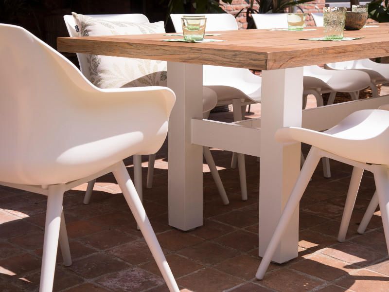Nádherný zahradní teakový stůl s hliníkovými nohami Yasmani Vás okouzlí svojí elegancí a unikátním designem. Na jeho výrobu bylo použito teakové dřevo nejvyšší kvality, který elegantně doplňují hliníkové nohy. Konstukce stolu a nohy jsou dostupné ve dvou barevných variantách, a to bílá a černá. U tohoto typu zahradního stolu vyniknou různé typy zahradních křesel a židlí od ratanových, moderních plastových až po hliníkové s doplňky z teakového dřeva. Naše nabídka je velmi rozmanitá, podívejte se do sekce Židle a křesla a vyberte ty, které jsou ve vašem stylu.