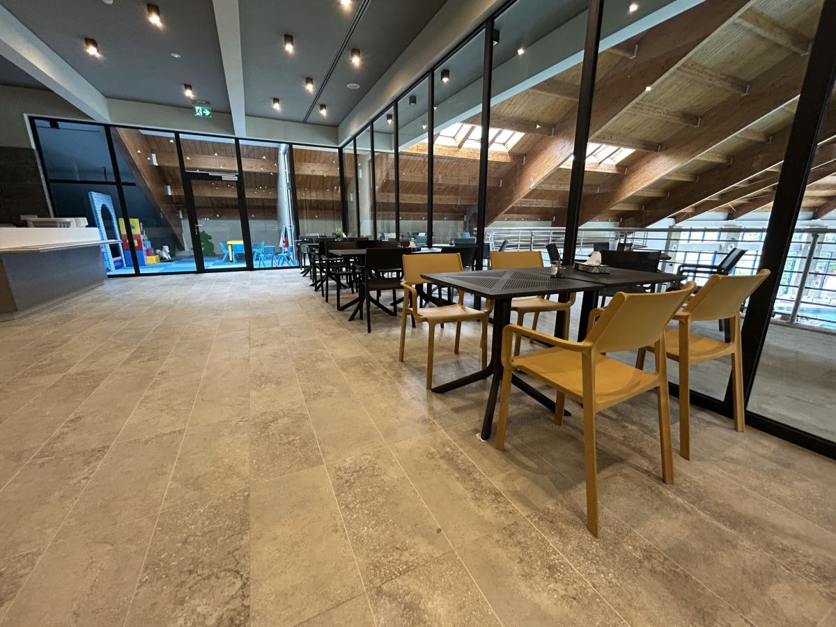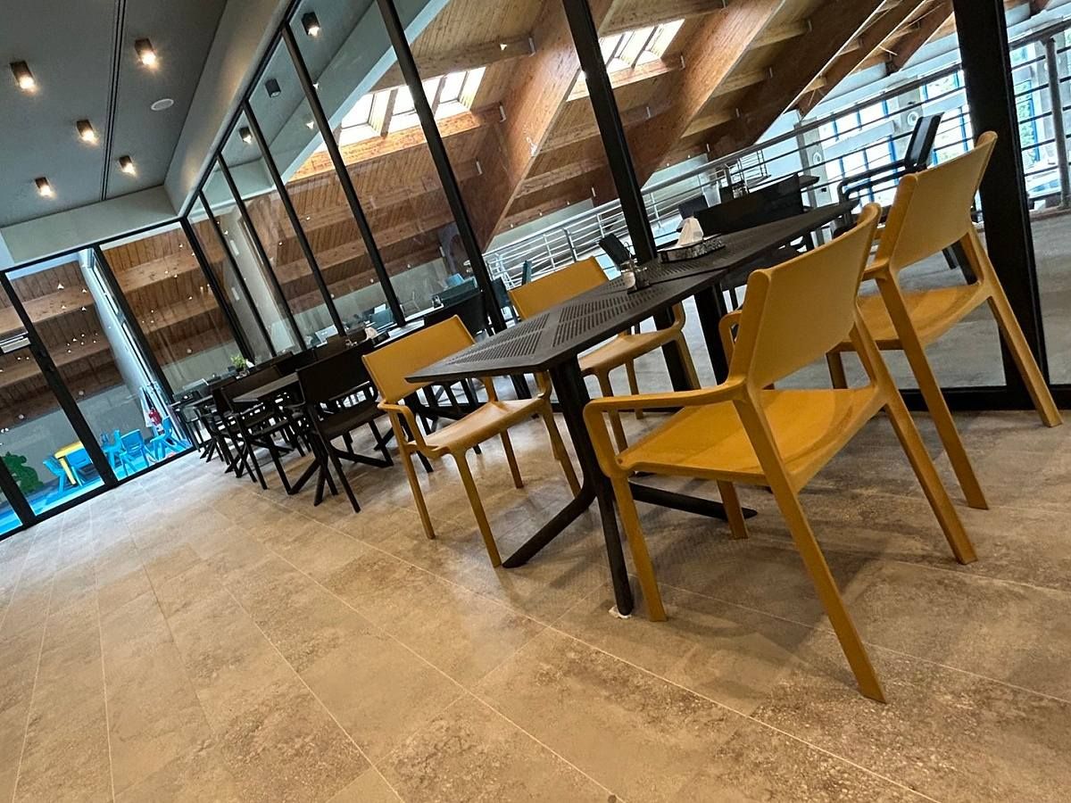 Zařízení krásného wellness hotelu Patince na jihu Slovenska. Barevné provedení židlí a stolů na přání klienta.