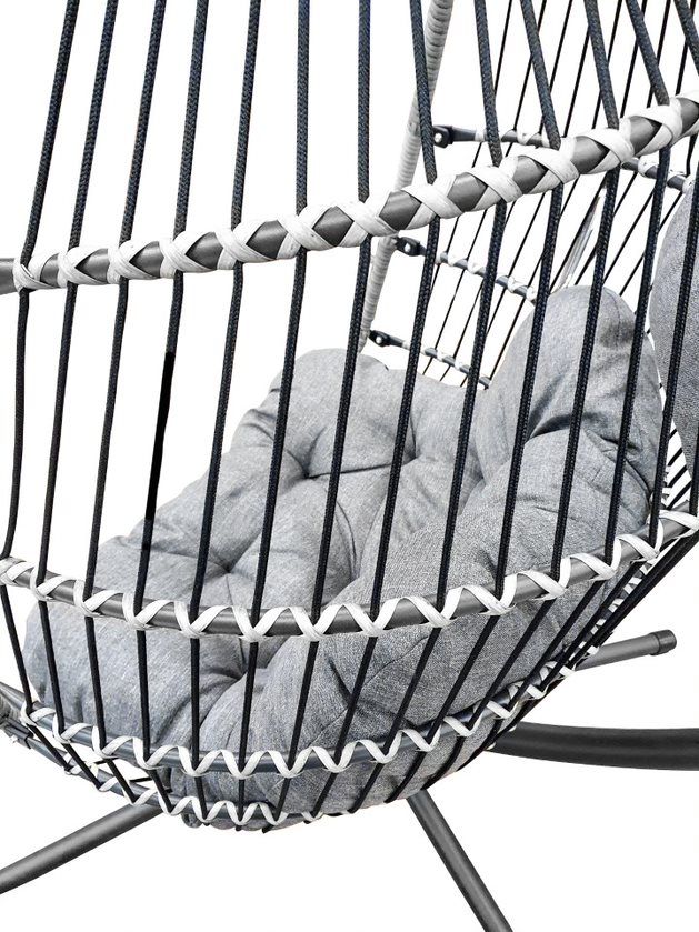 Krásné a elegantní závěsné křeslo Kevin Vás zve se pohodlně usadit a vychutnat si dokonalý relax a pohodlí. Konstrukce sedací části je z hliníku a je ovinutá kombinacií syntetických a textilných šnůr. Stojan křesla je kovový. Nosnost závěsného křesla je 130 kg. Díky širokým polstrům se Vám nebude chtít z křesla vstát.