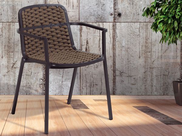 Krásná a elegantní zahradní židle Alessia je typickým představitelem italského citu pro design. Originalitu reprezentuje především ručně proplétané syntetické lano, které je ovinuté kolem hliníkové konstrukce. Konstrukce je stříkaná práškovou barvou. Židle je dostupná ve dvou barevných variantách: černá a hnědá.