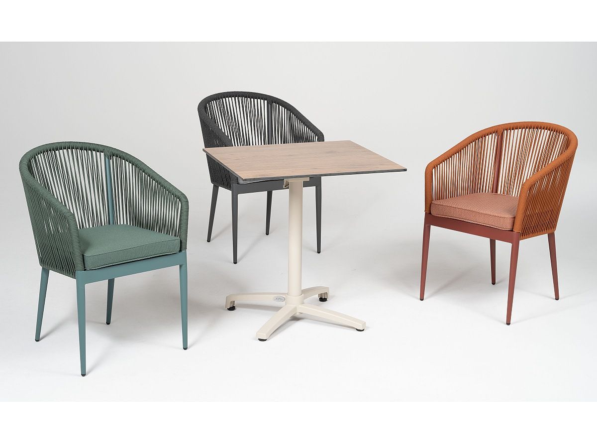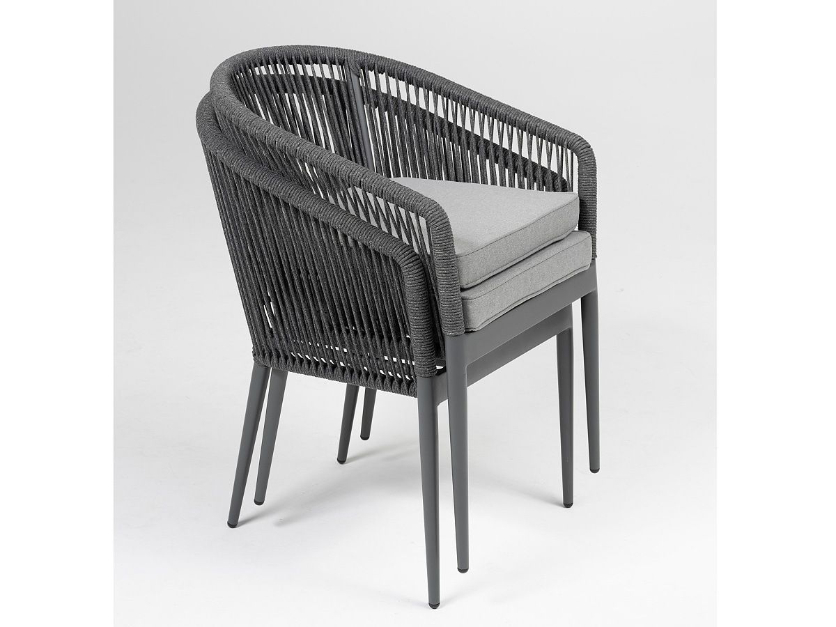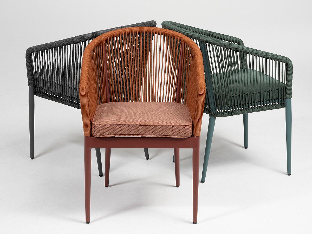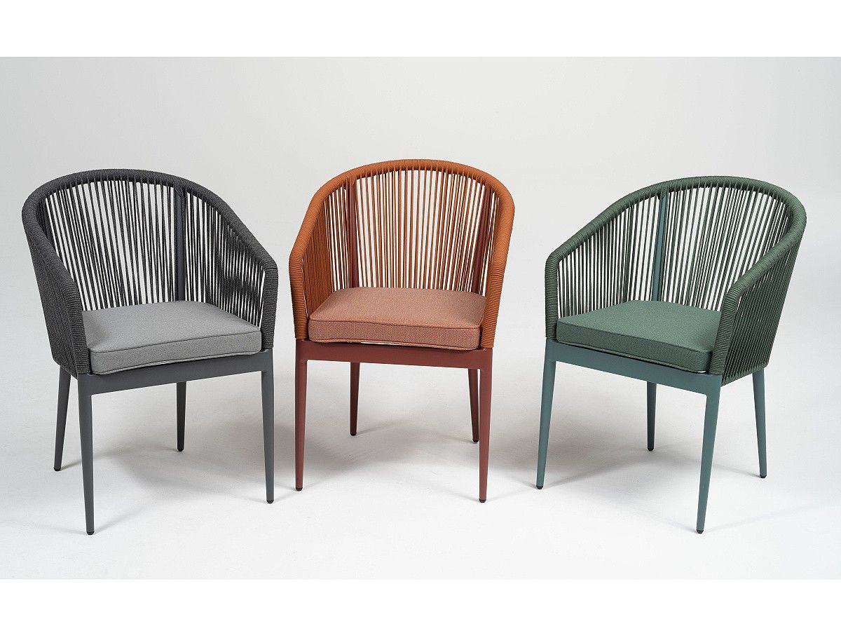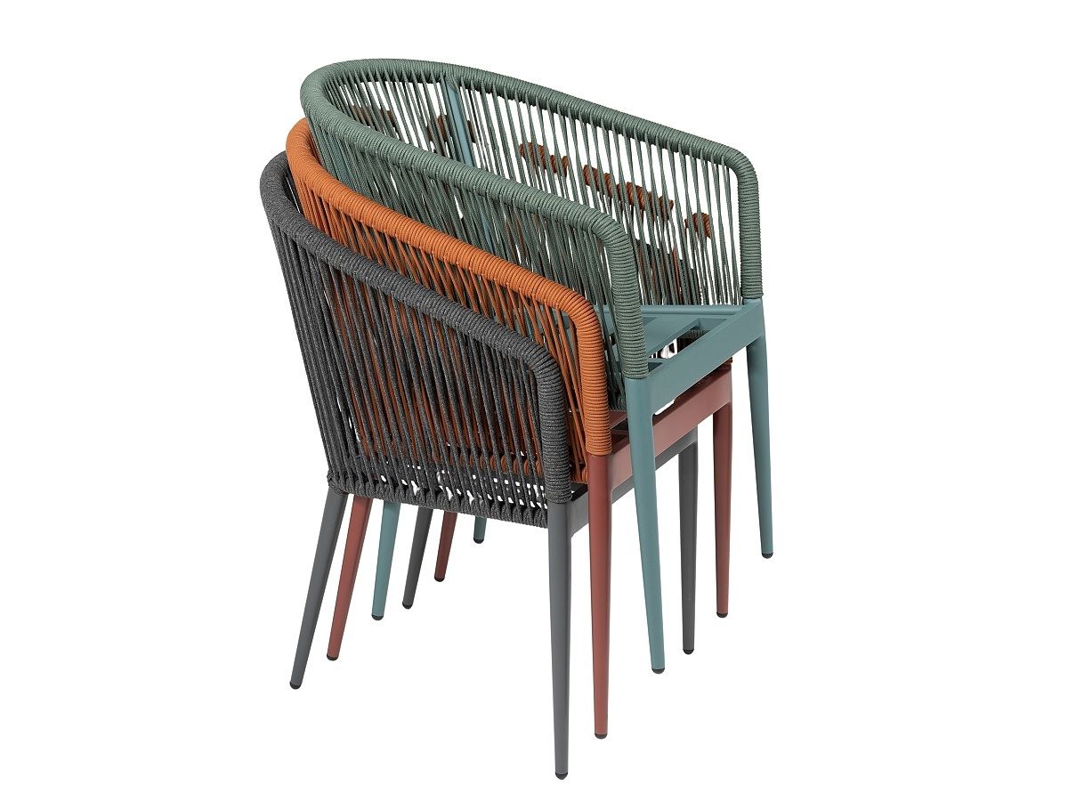 Moderní zahradní židle Amigo je ideálním řešením pro moderní kavárny a bary. Originalitu představuje hlavně syntetická tkanina, která je ovinutá kolem hliníkové konstrukce, která je stříkaná antracitovou práškovou barvou. Díky modernímu designu dodá punc dokonalosti každé terase. Podsedák je ze 100% polyesterové látky. Židle je dostupná ve 3 barevných variantách, které můžete vidět v galerii produktu níže. Židle jsou stohovatelné.