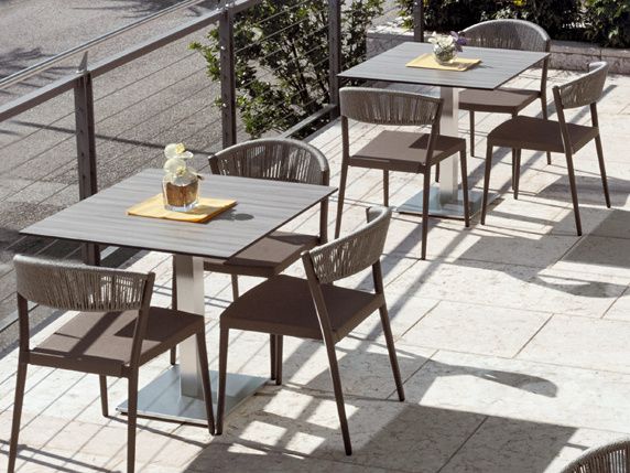 Elegantní a vzdušná zahradní židle Ariel Vás okouzlí svým krásným zpracováním. Rám židle je z pevného hliníku lakovaný komaxitem. Nevšednost této židle doplňuje krásné opěradlo, které je propletané syntetickým lanem. Sedací část je z rychloschnoucího PVC textilenu. Židle Ariel je dostupná ve třech barevných variantách, a to to v hnědé, bílé a šedé. Dokonale se hodí na terasy moderních kaváren a restaurací. Dostupná je i jako barová stolička
