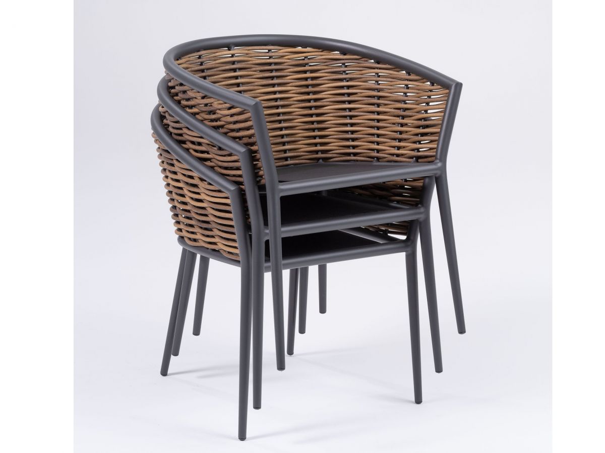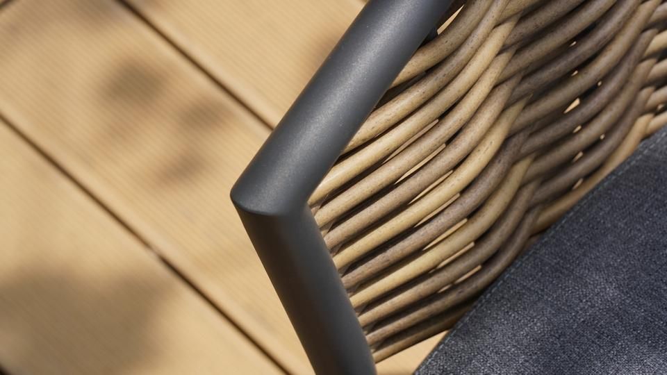 Krásná a moderní zahradní židle Bounty je ideální volbou do moderních kaváren, ale radost Vám udělá i na vaší terase. Židle Bounty má hliníkovou konstrukci, výplet je z dutého kulatého umělého ratanu. Židle je doplněna pohodlným podsedákem a zádovým polštárem.