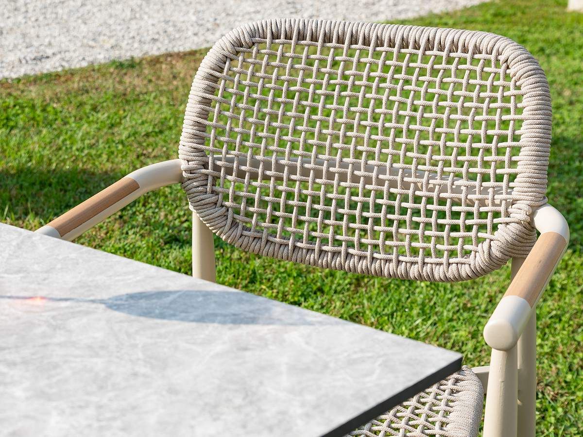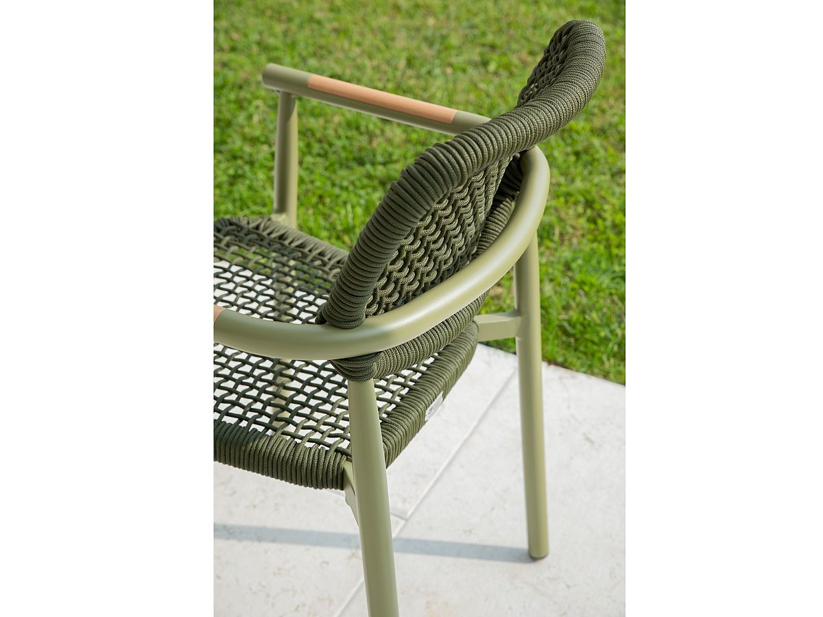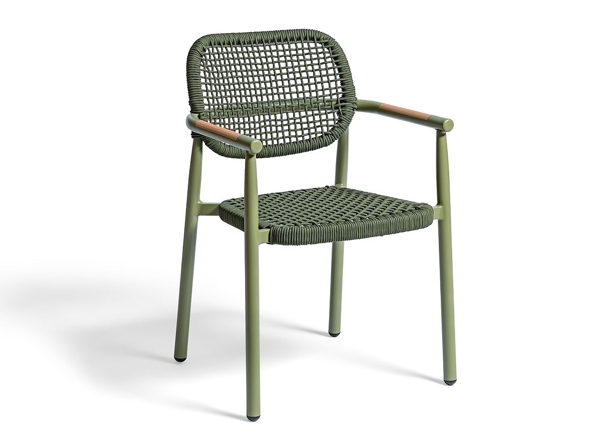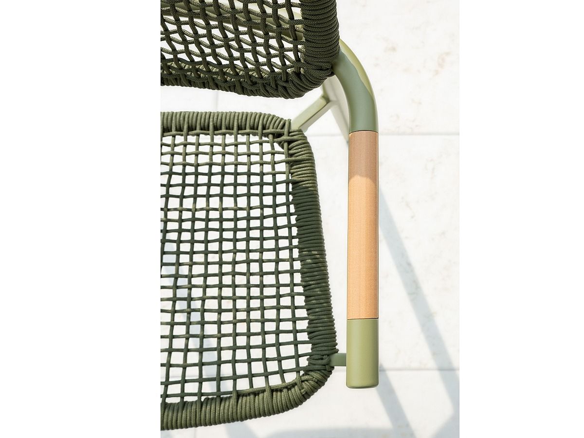 Vzdušná elegantní židle Cloe Armchair je typickým představitelem moderního designu zahradního nábytku. ŽIdle Cloe Armchair má hliníkovou konstrukci, opěrky na ruce mají TECH-Wood vložku. Opěradlo i sedací část jsou ručně ovinuté syntetickým lanem dodávají židli moderní vzhled. Díky použitým materiálům židle Cloe Armchair splňuje všechny předpoklady k tomu, aby mohla být venku bľhem celého roku. Tento typ židle je ideální volbou na terasy restaurací, kaváren nebo barů. Židle je dostupná ve třech barevných variantách: antracit, beige a také v krásné zelené. Všechny barvy můžete vidět v galerii. Židle je dostupná i v barovém provedení.