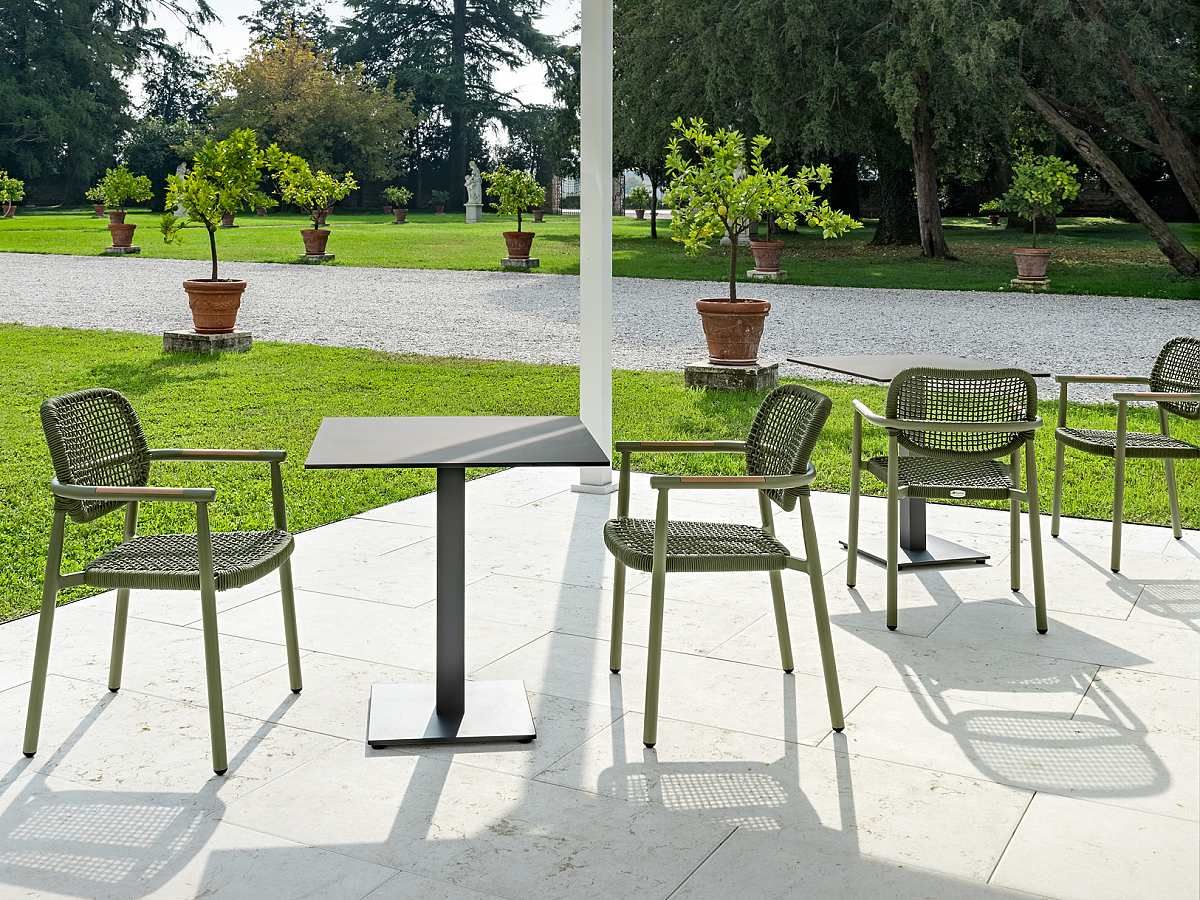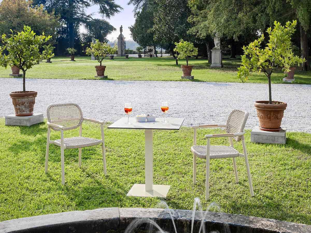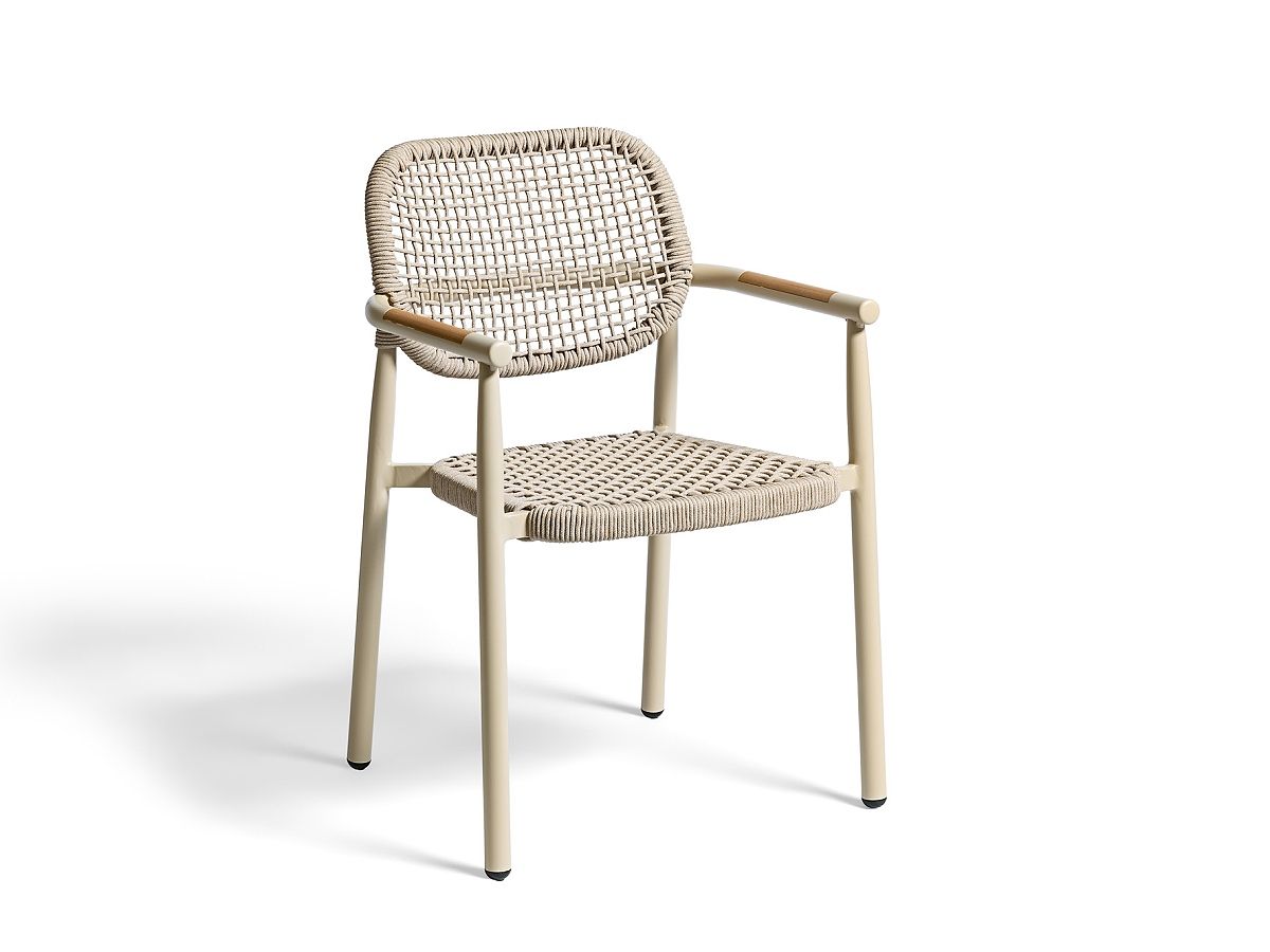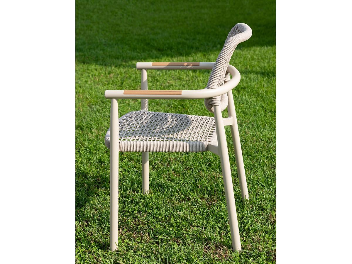 Vzdušná elegantní židle Cloe Armchair je typickým představitelem moderního designu zahradního nábytku. ŽIdle Cloe Armchair má hliníkovou konstrukci, opěrky na ruce mají TECH-Wood vložku. Opěradlo i sedací část jsou ručně ovinuté syntetickým lanem dodávají židli moderní vzhled. Díky použitým materiálům židle Cloe Armchair splňuje všechny předpoklady k tomu, aby mohla být venku bľhem celého roku. Tento typ židle je ideální volbou na terasy restaurací, kaváren nebo barů. Židle je dostupná ve třech barevných variantách: antracit, beige a také v krásné zelené. Všechny barvy můžete vidět v galerii. Židle je dostupná i v barovém provedení.