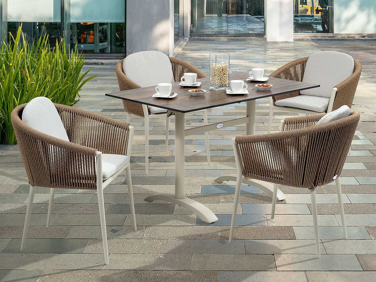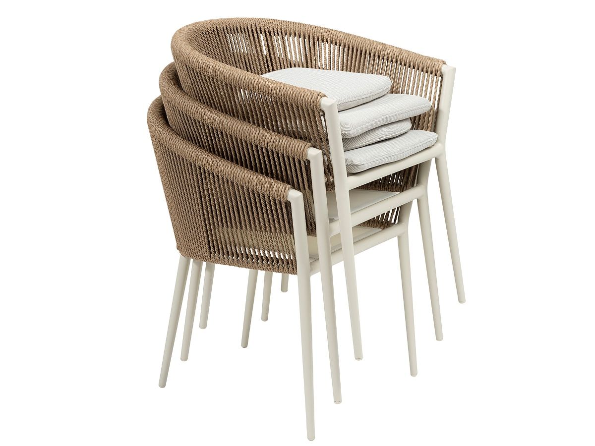 Nádherná a velmi pohodlná zahradní židle Coconut je ideální volbou do restaurací a kaváren, ale určitě Vám udělá radost i u Vás na terase. Je ideální volbou ke stolové sestavě. Židle má hliníkový rám a je ovinutá PVC lanem v krásném designu. Podsedák i opěrkový polštář jsou odolné vůči povětrnostním vlivům. Židle je stohovatelná. Pro více informací nás neváhejte kontaktovat.