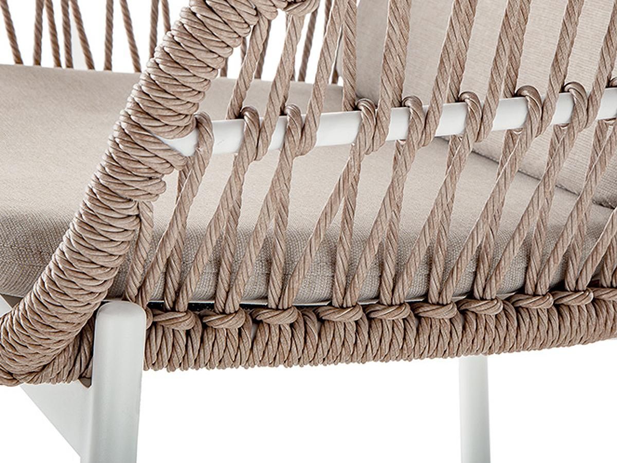 Nádherná a velmi pohodlná zahradní židle Elba Armchair je perfektní volbou do restaurací i kaváren, stejně tak Vám bude dělat radost i u Vás na terase jako ideální volba ke stolové sestavě. Židle má hliníkový rám a je ovinutá PVC lanem v krásném naturálním designu. Podsedák i opěrkový polštář jsou z materiálu OLEFIN a jsou odolné vůči povětrnostním vlivům. Židle je stohovatelná. Židle Elba Armchair je dostupná ve dvou barevných variatách v přírodních tónech, které můžete vidět v galerii.