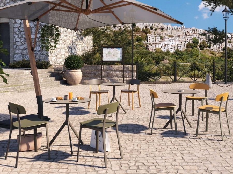 Moderní a krásná zahradní židle Feluca Pop je ideální volbou pro restaurace, bary a kavárny. Díky barevným kombinacím a použitým materiálům Vám bude sloužit dlouhé roky. Konstrukce židle je ocelová s outdoorovým nátěrem. Sedací část a opěradlo jsou z recyklovaného tvrzeného plastu a jsou k dispozici v 6 barevných variantách. Barvu konstrukce, sedací části a opěradla můžete libovolně kombinovat.
