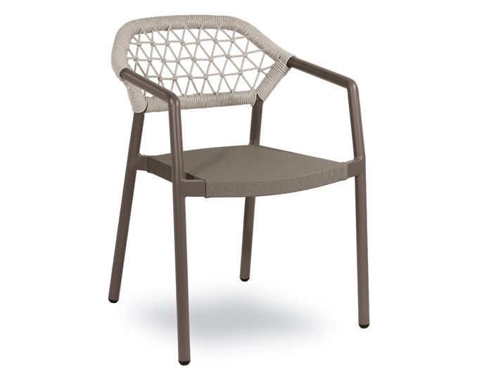 Nádherná designová židle Gaudi bude hvězdou každé moderní terasy. Židle Gaudi má hliníkovou konstrukci, opěradlo je ručně ovinuté syntetickým lanem a dodává židli moderní vzhled. Sedadlo je z rychleschnoucí PVC látky. Díky použitým materiálům židle Gaudi splňuje všechny předpoklady na to, aby mohla být venku během celého roku.