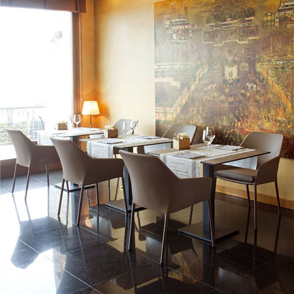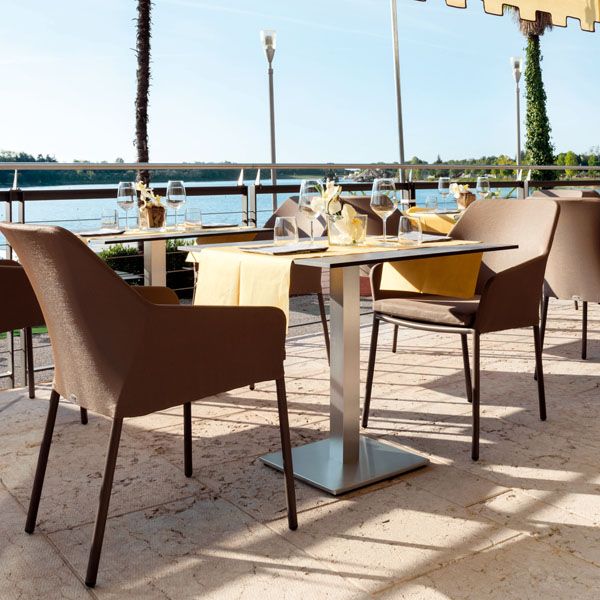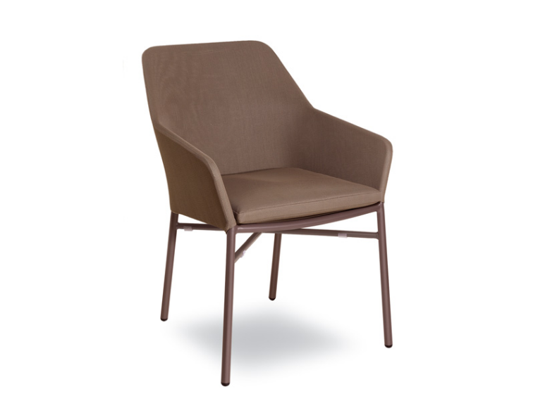 Krásná a elegantní zahradní židle Giselle je typickým představitelem italského citu pro design. Konstrukce židle je z pevného hliníku, který je potažený PVC textilií, takže je židle vhodná do jakéhokoli počasí. Podsedák je ze 100% polyesterové tkaniny s rychleschnoucí pěnou. Židle je stohovatelná, takže je vhodná do moderních kaváren, na terasy restaurací i hotelů. Židle Giselle je dostupná ve dvou barevných variantách, v hnědé a černé.