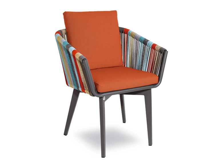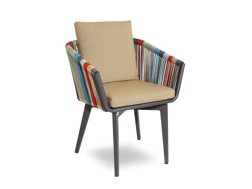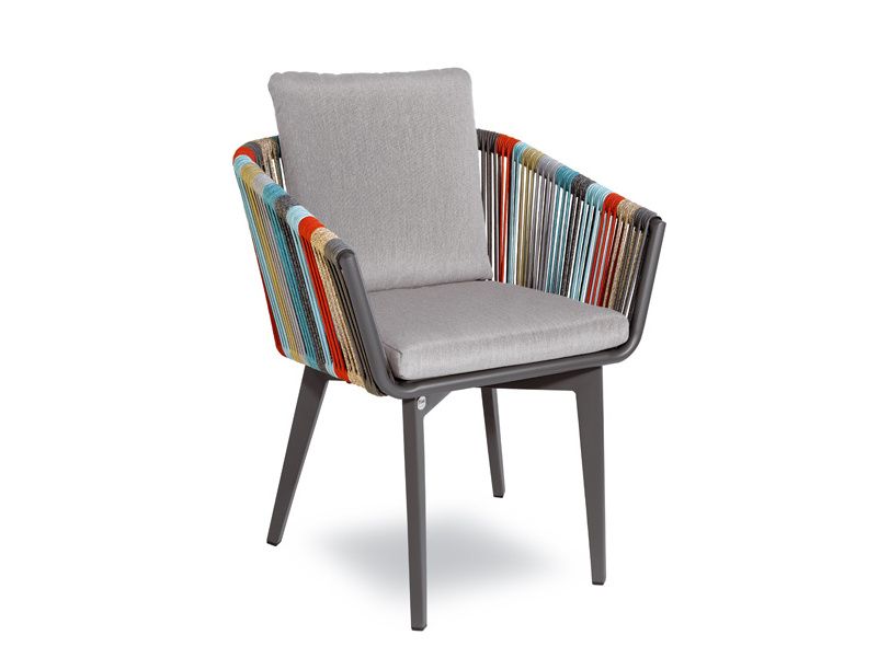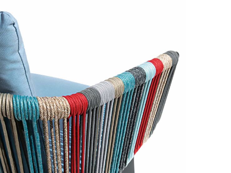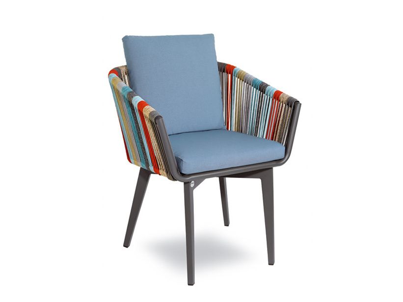 Poutavá zahradní židle Iride je typickým představitelem italského citu pro design. Originalitou zaujme především vícebarevná syntetická tkanina, která je ovinutá kolem hliníkové konstrukce, ta je stříkaná komaxitem. Díky zářivým barvám židle Iride rozjasní každý exteriér. Podsedák i zádový polštář jsou ze 100% polyesterové tkaniny, jsou snímatelné a voděodpudivé. Podsedák a zádový polštář můžete vybírat ze 4 barev, varianty najdete v galerii.