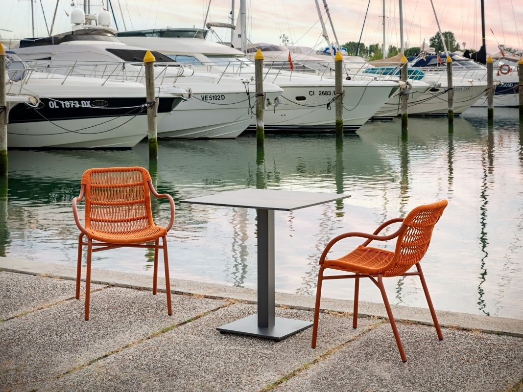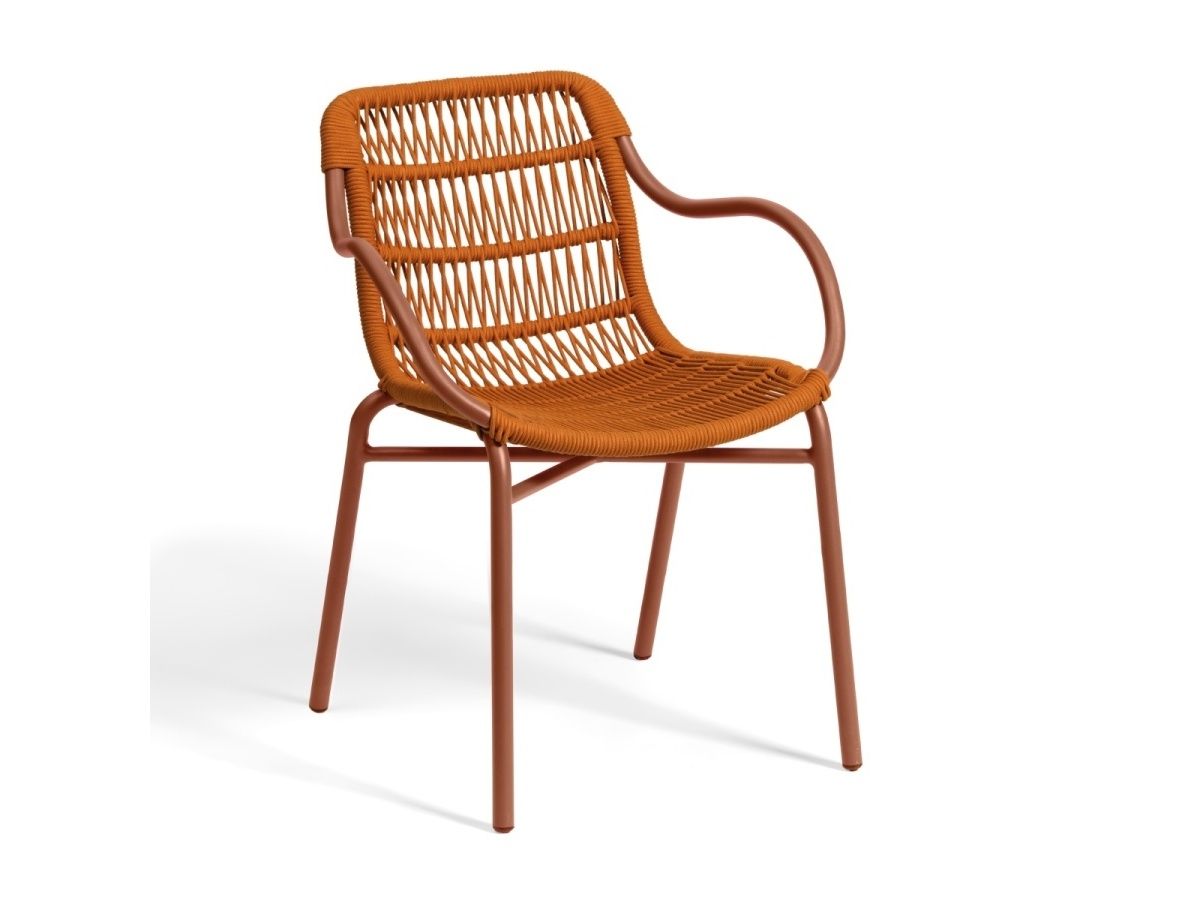 Nádherná a elegantní židle Leaf Armchair je typickým představitelem moderního designu zahradního nábytku. Židle Leaf Armchair má hliníkovou konstrukci, opěradlo je ručně ovinuté syntetickým lanem, které dodává židli moderní vzhled. Díky použitým materiálům židle Leaf Armchair splňuje všechny předpoklady k tomu, aby mohla být venku během celého roku. Tento typ židle je ideální volbou na terasy restaurací, kaváren nebo barů. Židle je dostupná ve třech barevných variantách: antracit, bianco a také v nádherné barvě terracotta (červeno-oranžová), které můžete vidět galerii. Židle je dostupná i v provedení bez ručních podpěrek i jako křeslo. Ve stejném provedení máme i sedací soupravu Leaf, kterou najdete v sekci sedací soupravy.