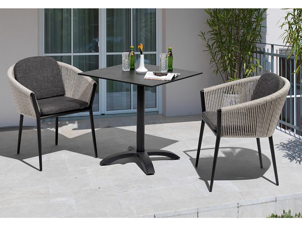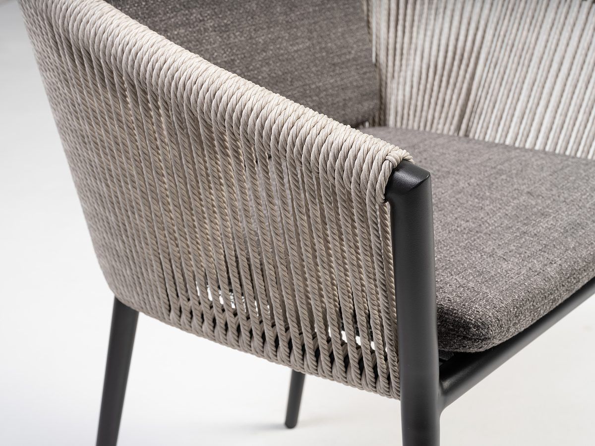 Nádherná a velmi pohodlná zahradní židle Mango Hellgrau je ideální volbou do restaurací a kaváren, ale stejně tak Vám bude dělat radost na terase jako skvělá volba ke stolové soupravě. Židle má hliníkový rám a je ovinutá syntetickým rychleschnoucím lanem v krásném designu. Podsedák i opěrkový polštář jsou odolné vůči povětrnostním vlivům. Židle je stohovatelná a máme ji k dispozici ve dvou barevných variantách. Ve stejném designu máme v nabídce i sedací sestavu Mango Antracit Hellgrau.