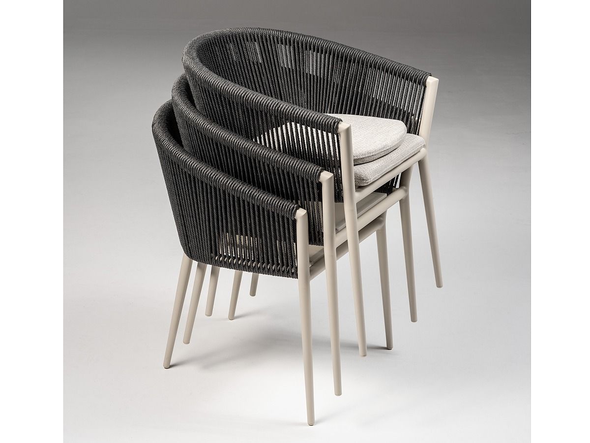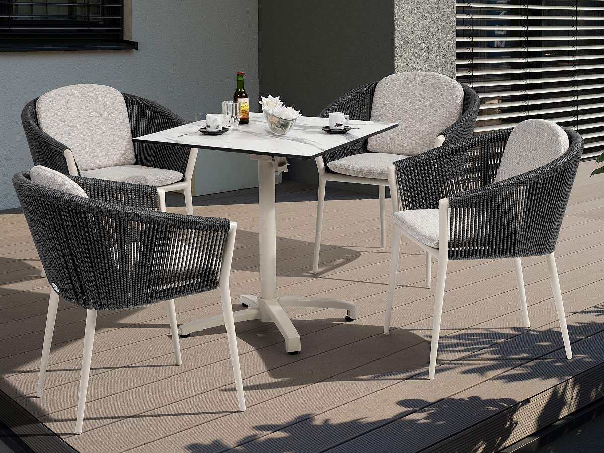 Nádherná a velmi pohodlná zahradní židle Mango Dunkel je ideální volbou do restaurací a kaváren, ale stejně tak Vám bude dělat radost na terase jako skvělá volba ke stolové soupravě. Židle má hliníkový rám a je ovinutá syntetickým rychleschnoucím lanem v krásném designu. Podsedák i opěrkový polštář jsou odolné vůči povětrnostním vlivům. Židle je stohovatelná a máme ji k dispozici ve dvou barevných variantách. Ve stejném designu máme v nabídce i sedací sestavu Mango Ivory Dunkel.