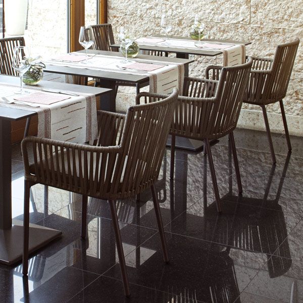 Krásná a elegantní zahradní židle Megan Rope je typickým představitelm italského citu pro design, je vhodná na terasy moderních restaurací a barů. Originalitu reprezentuje především nádherně ručně proplétané syntetické lano, které je ovinuté kolem hliníkové konstrukce. Konstrukce je stříkaná komaxitem. Podsedák je ze 100% polyesterové tkaniny s rychleschnoucí pěnou.