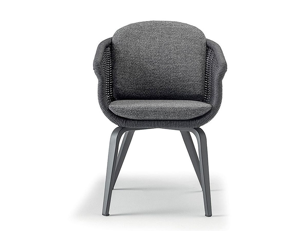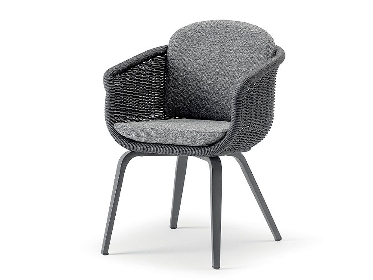 Nádherná a velmi pohodlná zahradní židle Melrose Rope je ideální volbou do restaurací i kaváren, ale stejnou radost Vám udělá i u Vás na terase jako ideální volba ke stolové sestavě. Židle má hliníkový rám a je ovinutá 6mm textilním lanem tmavě šedé barvy v moderním designu. Podsedák i opěrkový polštář jsou odolné vůči povětrnostním vlivům z materiálu Olefin s rychleschnoucí pěnou Quick Dry Foam.