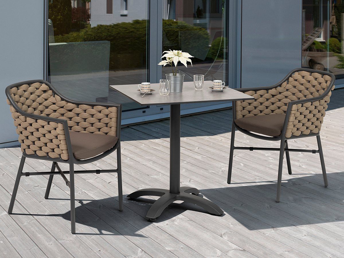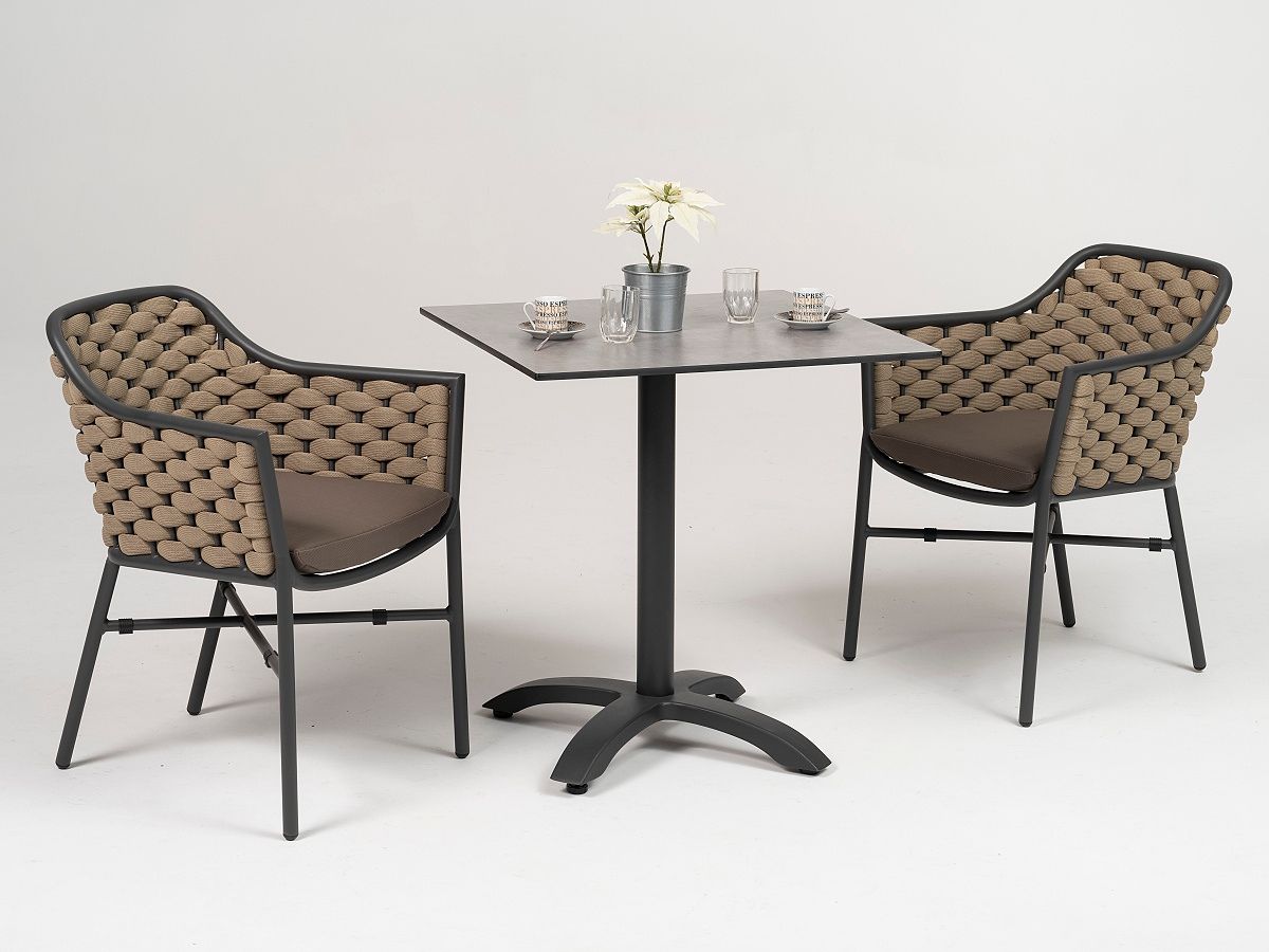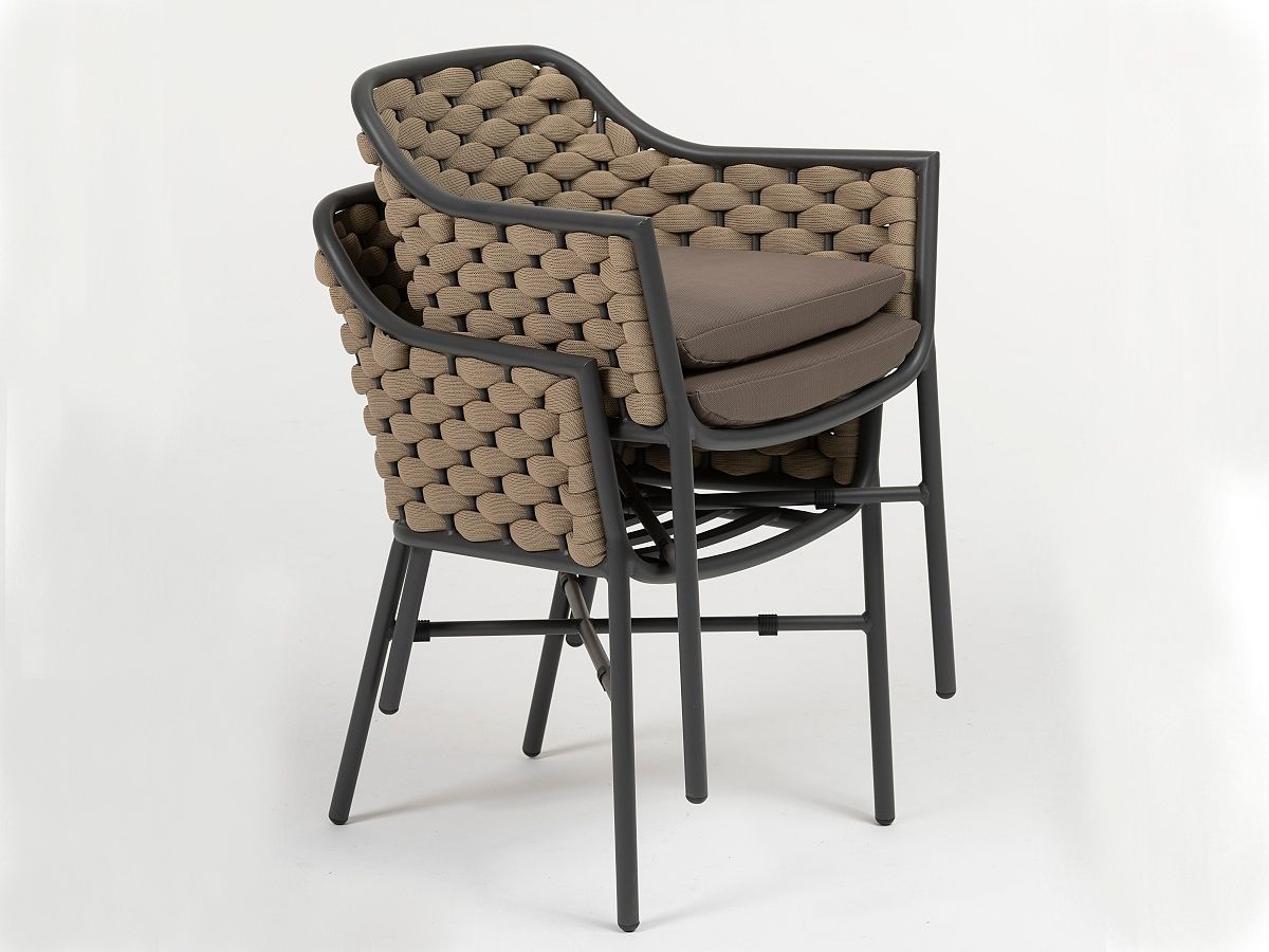 Nádherná dizajnová stolička Rio Armchair je typickým predstaviteľom moderného prevedenia záhradného nábytku. Stolička Rio Armchair má hliníkovú konštrukciu, operadlo je ručne ovinuté tkanou tubulárnou syntetickou tkaninou. Podsedák je z rýchloschnúcej PVC látky a vnutorná pena je z Quick Dry Foam. Vďaka použitým materiálom stolička Rio Armchair splňuje všetky predpoklady na to aby mohla byť vonku počas celého roka. Tento typ stoličky je ideálnou voľbou pre terasy reštaurácií, kaviarní či barov. Stolička je dostupná v dvoch farebných kombináciách a to v antracit/taupe a white/grey.