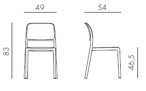 Zahradní židle Riva Bistrot bez opěrek na ruce je vyrobená z tvrzeného plastu zpevněného skelným vláknem. Je dostupná v 7 barevných variantách. Jedná se o odlehčenou verzi židle Riva, protože nemá opěrky na ruce. Díky možnosti stohování, nízké váze a extremné odolnosti materiálu je vhodná do gastro zařízní, ale určitě Vám udělá radost i u Vás na zahradě či terase.