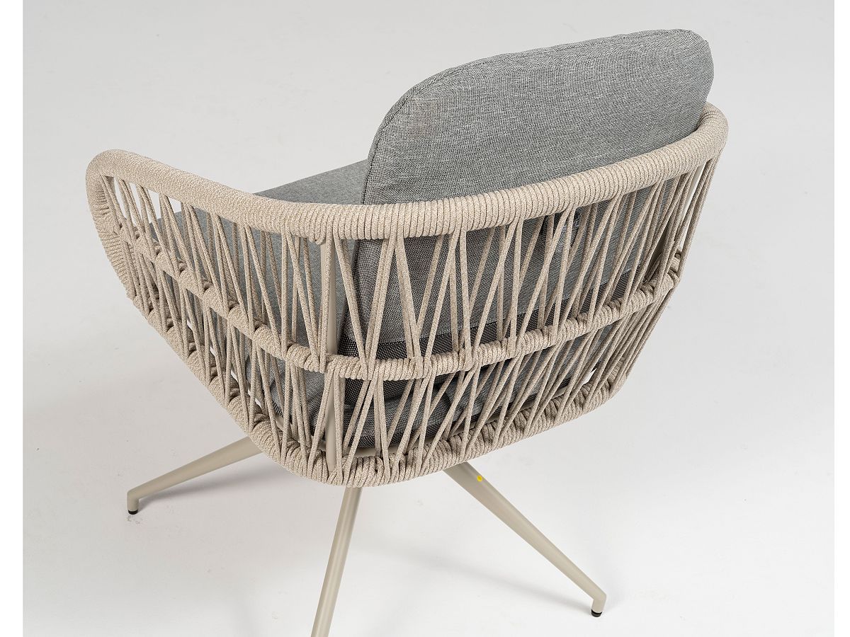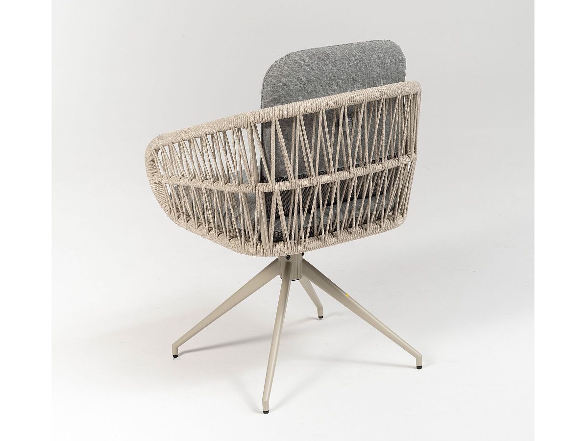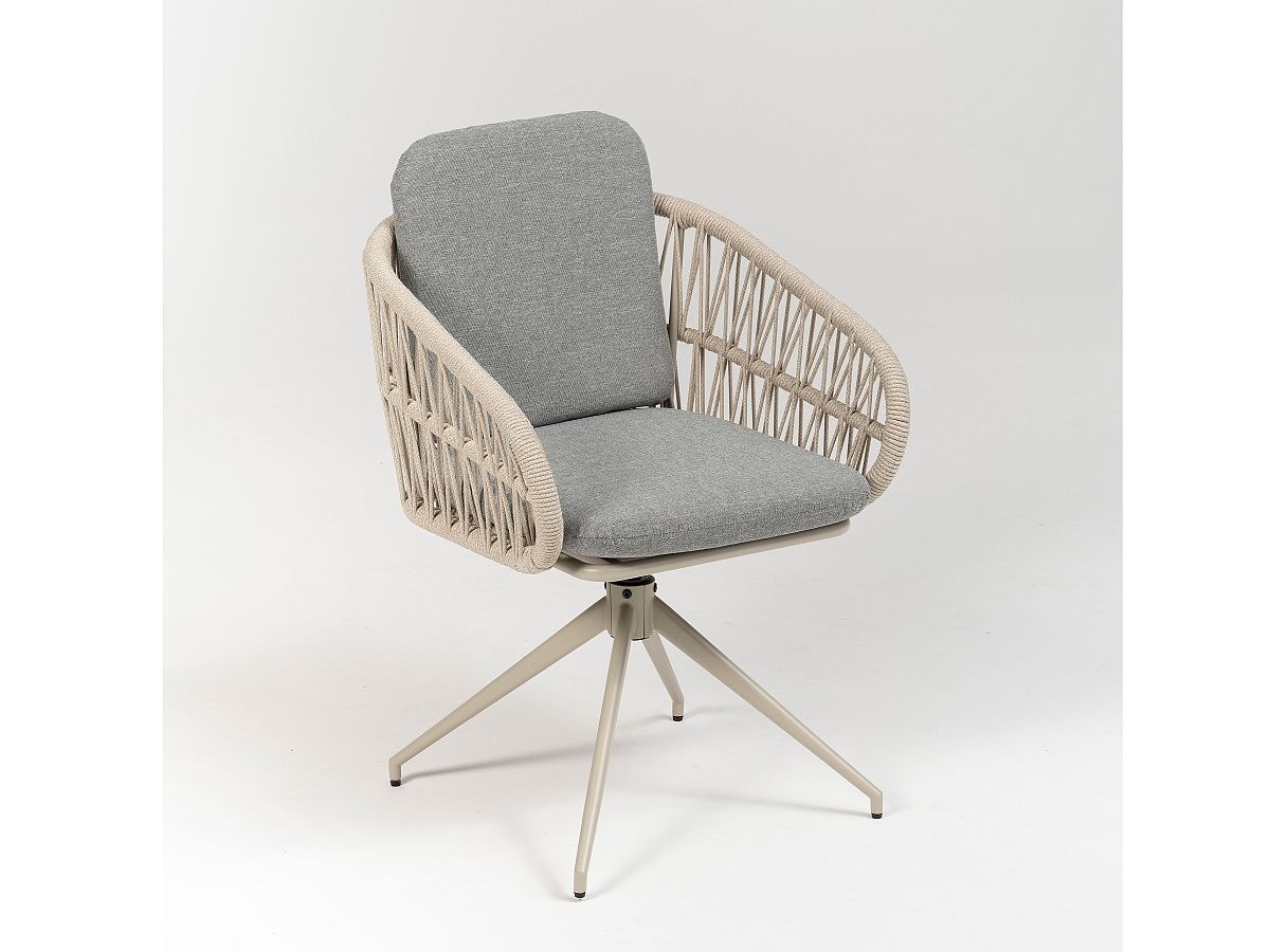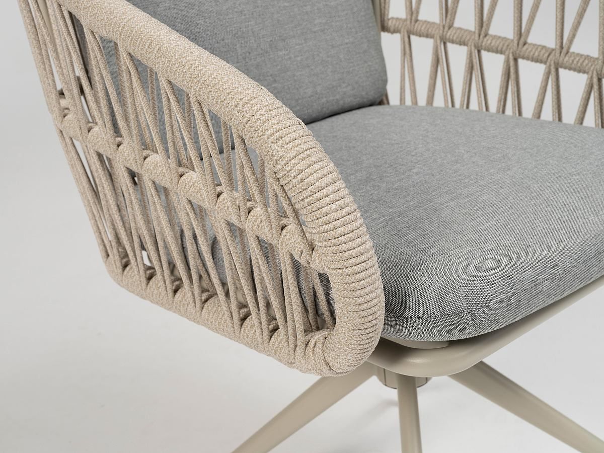 Stolička Sahara predstavuje vrchol elegancie a funkčnosti v exteriérovom dizajne. Jej charakteristickým prvkom je precízne spracovaná otočná podnož, ktorá v kombinácii s otvoreným grafickým výpletom z odolných šnúr dodáva stoličke ľahký a moderný vzhľad. Vďaka ergonomickému dizajnu a pohodlným vonkajším poduškám ponúka vysoký komfort, ktorý oceníte počas dlhého stolovania či relaxu na terase. Sahara je dostupná v dvoch štýlových farebných vyhotoveniach, ktoré sa hodia do rôznych typov moderných priestorov.