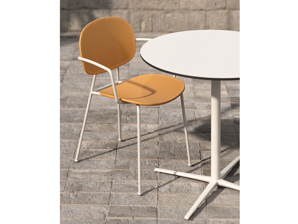 Židle Tondina Slim Armchair v sobě spojuje tradici i inovaci v oblasti designu exteriérového nábytku. Tato židle připomíná svým vzhledem židli z 50. let minulého století, která je ovšem interpretovaná do současné moderní podoby. Krásné štíhlé linie, poutavé barvy a množství krásných kombinací předurčují tuto židli jako dokonalý výběr pro harmonické zařízení venkovních prostorů restaurací, kaváren nebo hotelů. Sedací část i opěradlo jsou mikroperforovaný tvrzený plast, konstrukce židle je kovová s outdoorovým nátěrem. Barevné provedení konstrukce a sedacích částí můžete vidět na přiložených obrázcích. Židle je dostupná i v provedení s plným opěradlem a sedací částí.